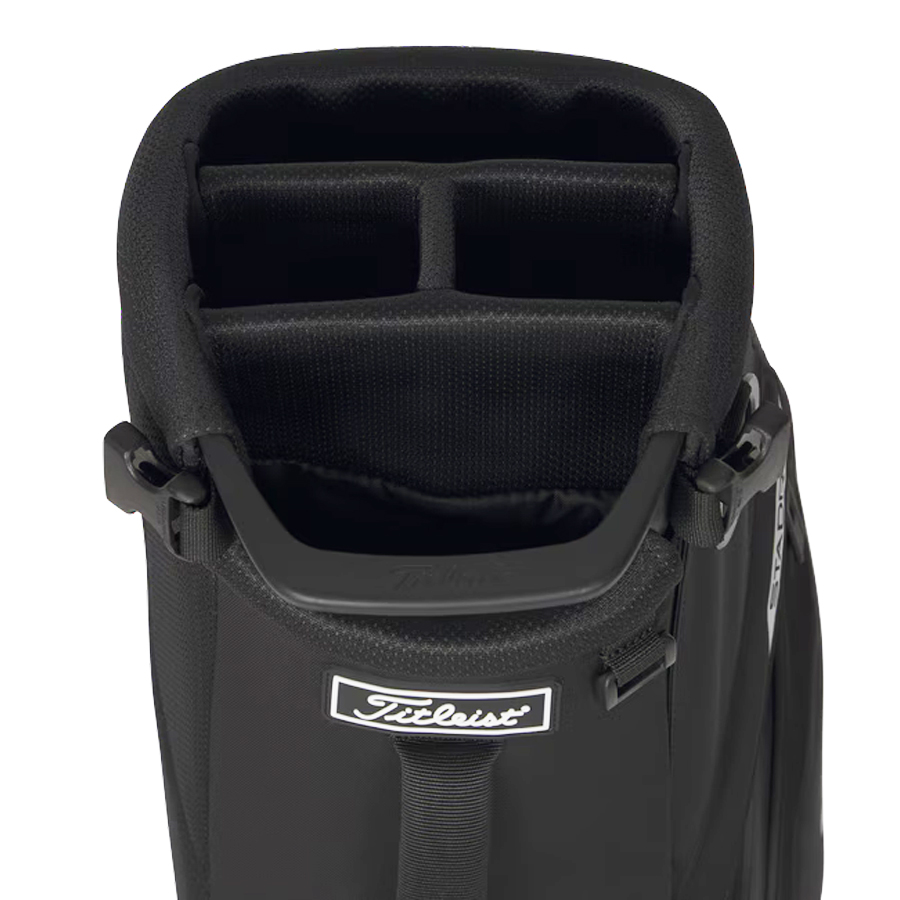 Titleist Players S4 StaDry er udstyret med en praktisk 4-delt top, som gør det nemt at organisere dine køller. Derudover får du flere funktionelle lommer, herunder en rummelig tøjlomme, værdilomme med velourfor og dedikerede rum til tilbehør, så du altid har dine vigtigste ting lige ved hånden.
