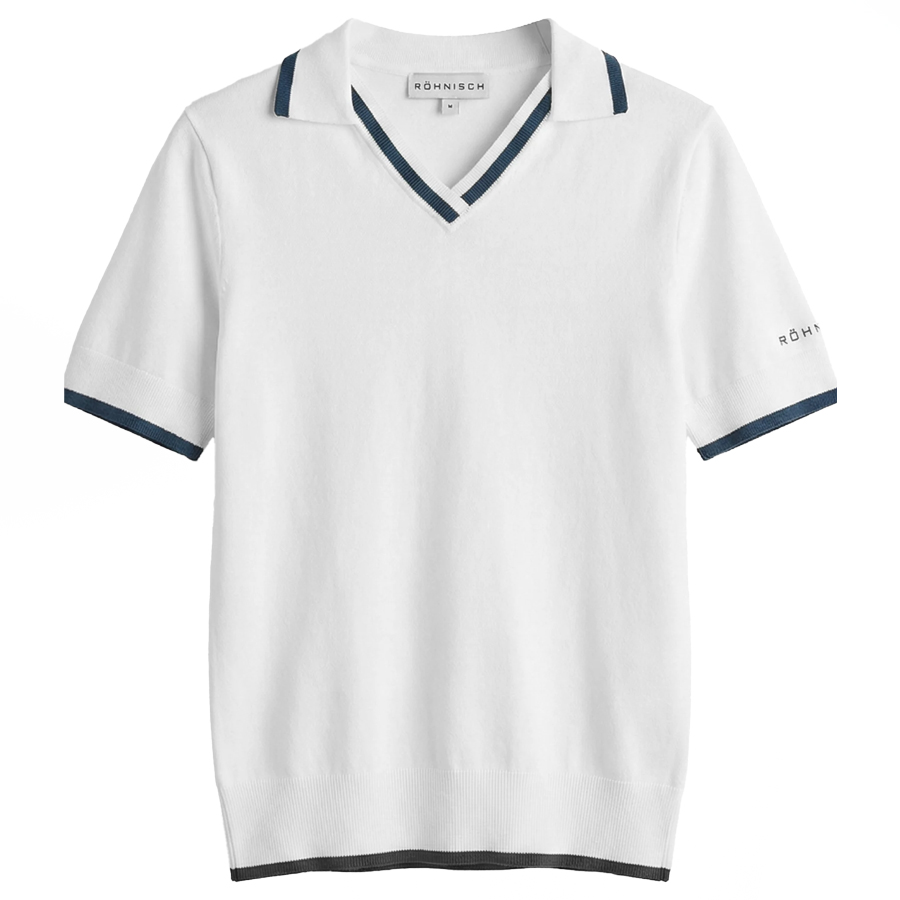 Röhnisch Swing Knitted Poloshirt White/Navy - Let og luksuriøs poloshirt i blød, strikket kvalitet!