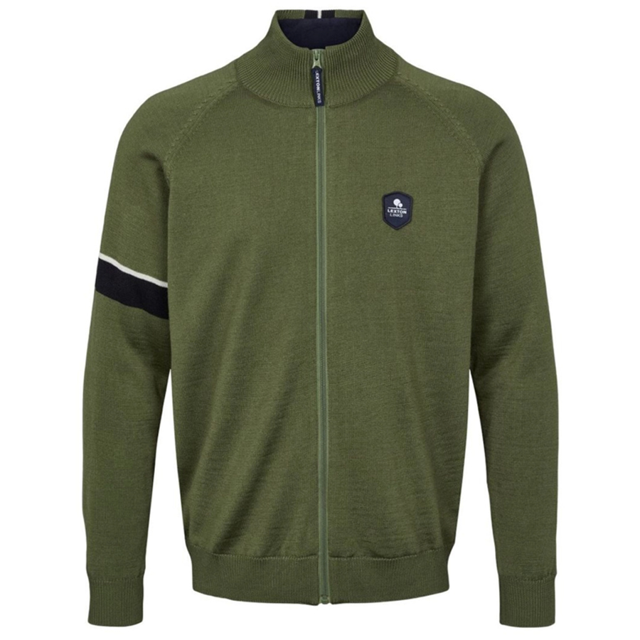 Vi lagerfører Lexton Links windstopperen i Oliven med Navy kontraster.